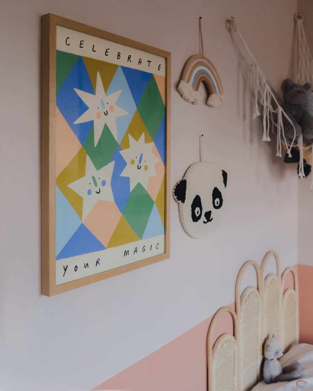 Featuring colourful stars with smiling faces, this piece of kids wall art encourages little ones to celebrate their uniqueness and embrace their quirks. A perfect playroom print or bedroom addition, it’s a magical reminder that the world needs all kinds of minds.