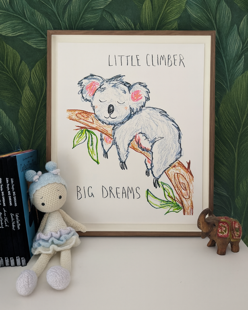 The most adorable addition to your nursery. Say hello to our sleepy little koala - Little Climber, Big Dreams - created by our dear friend Alma Singer. Alma’s joyful, colour-packed style brings the perfect mix of calm and charm to this dreamy design. Collaborating with her has been an Earthling dream!